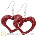 Red Crystal Heart Basketball Wives Bamboo Hoop Earrings