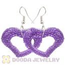 Purple Crystal Heart Basketball Wives Bamboo Hoop Earrings