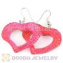Pink Crystal Heart Basketball Wives Bamboo Hoop Earrings