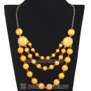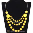 Fashion Silver Chains Three Layers Yellow Resin Bubble Bib Statement Necklaces Wholesale