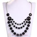Fashion Silver Chains Three Layers Black Resin Bubble Bib Statement Necklaces Wholesale