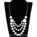 Fashion Silver Chains Three Layers White Resin Bubble Bib Statement Necklaces Wholesale
