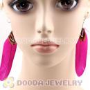Fashion Bohemian Magenta Feather Earrings With Alloy Fishhook Wholesale
