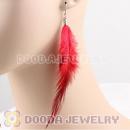 Red Tibetan Jaderic Bohemia Long Feather Earrings Wholesale