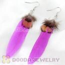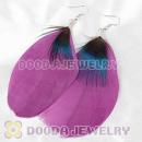 Cheap Purple And Grizzly Feather Earrings With Alloy Fishhook Wholesale