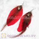 Red Tibetan Jaderic Bohemia Grizzly Feather Earrings Wholesale
