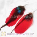 Red Handmade Rooster Feather Earrings With Alloy Fishhook Wholesale