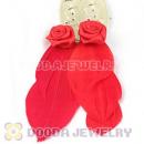 Wholesale Red Tibetan Jaderic Bohemia Styles Shagginess Feather Earrings