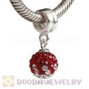 Sterling Silver European Charms Dangle Red -White Czech Crystal Beads