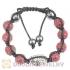 Red Crystal Ball Bead Bracelet With Crystal Skull Bead And Hematite