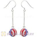 10mm Czech Crystal Flag Of USA Bead Sterling Silver Dangle Earrings Wholesale