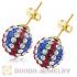 10mm Czech Crystal Flag Of USA Bead Sterling Silver Dangle Earrings Wholesale