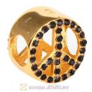 Gold Plated Sterling Silver Peace Button Beads with Jet Austrian Crystal