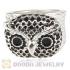 Wholesale 18mm Unisex Silver Plated Enamel Black Owl Finger Ring