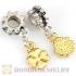 1. Feature: As we all known that Four Leaf Clover are represent of good luck token.Add variety to your bracelet with a dangle charm.Beads with dangles works well on a chain necklace,cotton or leather cord. Use your imagination.The possibilities and joys are endless.2. Material: gold plated Zinc alloy, Environmental non-toxic