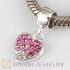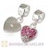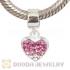 925 Sterling Silver Heart Dangle Charms With Pink Austrian Crystal Wholesale