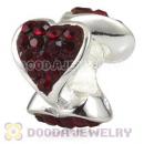 925 Sterling Silver Sparkling Heart Charm Beads With Red Austrian Crystal Wholesale