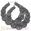 80mm Black Basketball Wives Bamboo Buddhist Bead Crystal Hoop Earrings