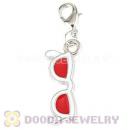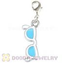 Platinum Plated Alloy Enamel European Jewelry Cyan Sunglass Charms Wholesale