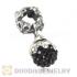 Silver European Forever Bloom Dangle Charms 8mm Black Czech Crystal Beads