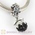 Silver European Forever Bloom Dangle Charms 8mm White-Black Czech Crystal Beads