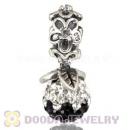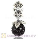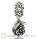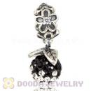 Silver European Forever Bloom Dangle Charms 8mm Black Czech Crystal Beads