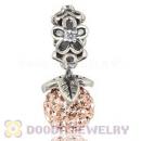 Silver European Forever Bloom Dangle Charms 8mm Rose Czech Crystal Beads