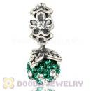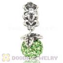 Silver European Forever Bloom Dangle Charms 8mm Green Czech Crystal Beads