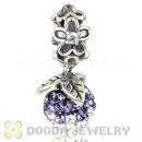 Silver European Forever Bloom Dangle Charms 8mm Purple Czech Crystal Beads