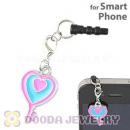 Earphone Jack Plug With Pink Ribbon Charms Jewelry Earphone Jack Plug With Key Heart Charms Jewelry