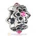 European Sterling Silver Dahlia Charm Beads with Black Diamond Austrian Crystal