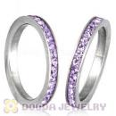 Fashion Unisex Stainless Stackable Finger Ring With Light Amethyst Austrian Crystal