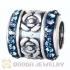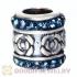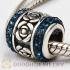 925 Sterling Silver Rose Flower Barrel Bead With Blue Austrian Crystal