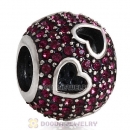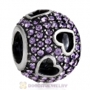Sterling Silver Tumbling Hearts Charm with Violet Austrian Crystal