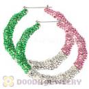 85mm Basketball Wives Bamboo AKA Style Clear Pink And Green Crystal Hoop Earrings