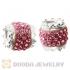 925 Sterling Silver Rose Flower Barrel Bead With Red Austrian Crystal