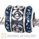 925 Sterling Silver Rose Flower Barrel Bead With Austrian Crystal