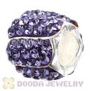 925 Sterling Silver Rose Flower Barrel Bead With Violet Austrian Crystal