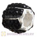 925 Sterling Silver Rose Flower Barrel Bead With Black Austrian Crystal
