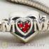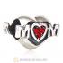 Sterling Silver European MOM Heart Bead with Siam Austrian Crystal