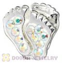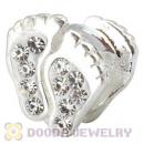 Sterling Silver European Feet Charms Bead With White Austrian Crystal