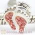 925 Sterling Silver Foot Charm Bead With Pink Austrian Crystal