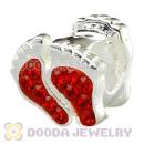 Sterling Silver European Feet Charms Bead With Red Austrian Crystal