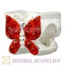 925 Sterling Silver Butterfly Charm Beads With Red Austrian Crystal