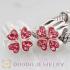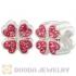925 Sterling Silver Charm Beads With Heart Fushia Austrian Crystal