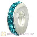 Sterling Silver European Spacer Beads With Blue Austrian Crystal