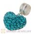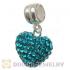 Sterling Silver European Dangle Blue Austrian Crystal Heart Charm Beads