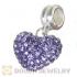Sterling Silver European Dangle Violet Austrian Crystal Heart Charm Beads