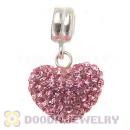 Sterling Silver European Dangle Pink Austrian Crystal Heart Charm Beads