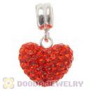 Sterling Silver European Dangle Red Austrian Crystal Heart Charm Beads